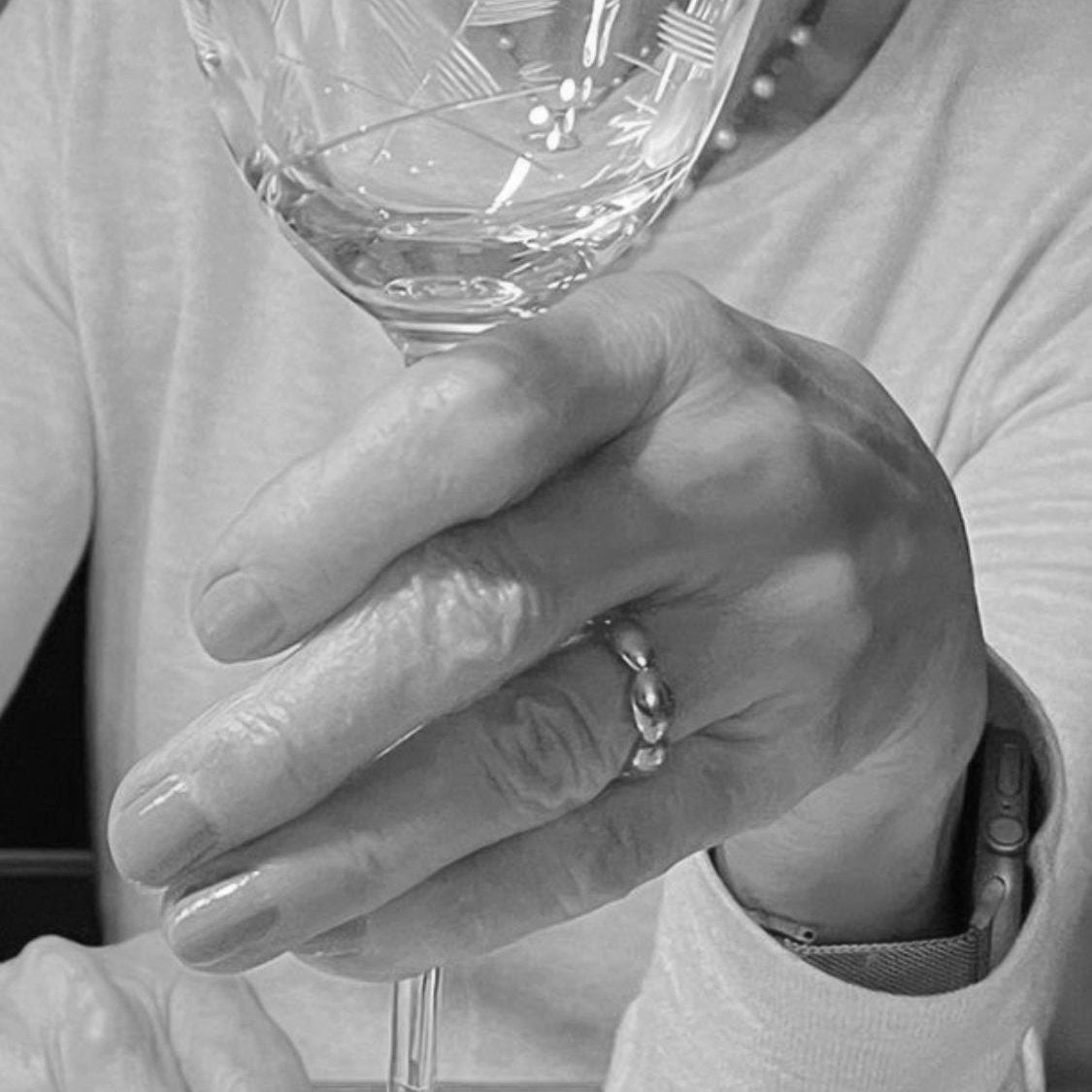 The Prologue Ring Serif is crafted from solid, 100% recycled sterling silver plated with 24 carat gold and showcases a series of perfectly connected, round lenses—one of the most harmonious and timeless forms in design. These finely polished, gradually increasing ellipsoids create a mesmerizing play of light reflections. The Voda. logo and hallmark engraved on the inside are marks of authenticity and the highest quality.
