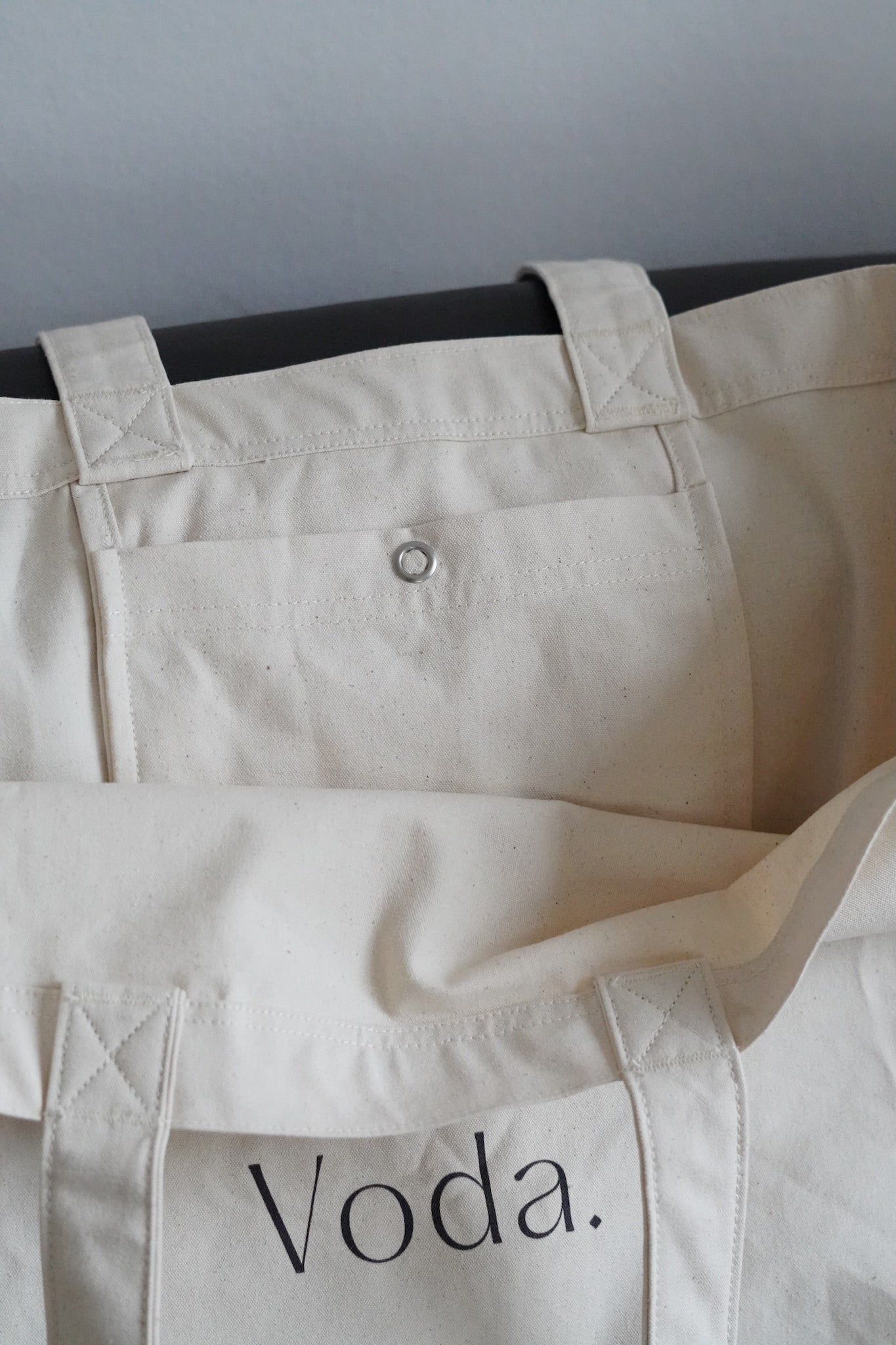 This premium Voda. Bag, made from organic cotton, is the perfect everyday companion. With a spacious 24-liter capacity, it features a shaped bottom panel, sturdy cotton canvas handles, and an inner pocket with a metal press button closure for safe storage of small items. Notable details include twin-needle and single-needle topstitching, reinforced side seams, and durable bartack at the handles. Subtle Voda. branding adds an elegant touch to this functional and stylish tote.